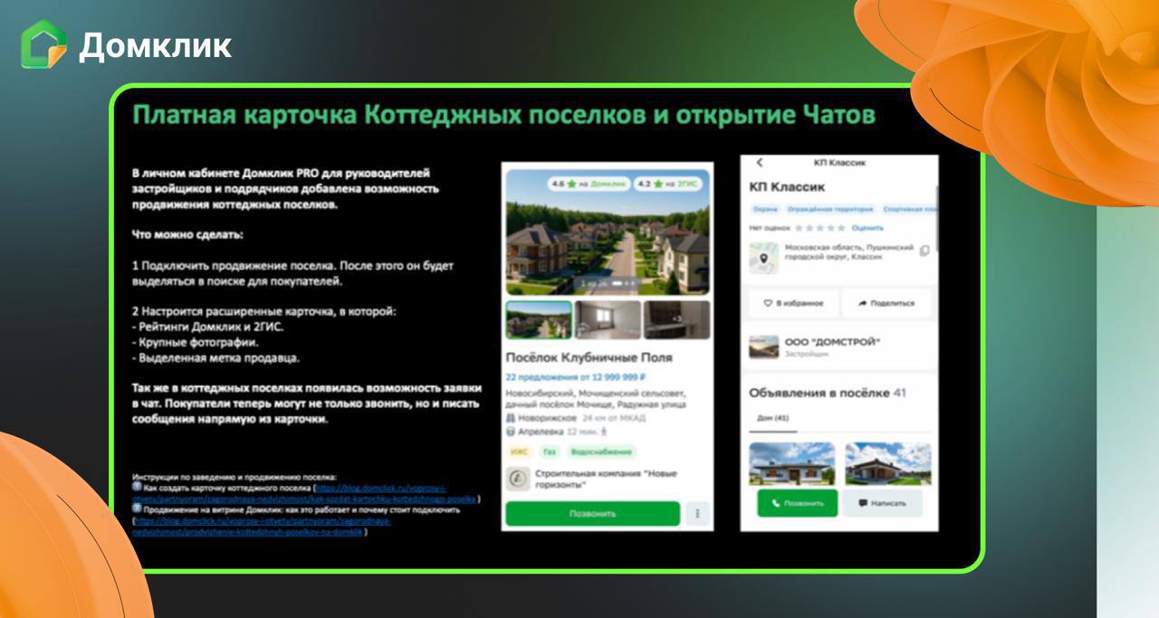 Домклик представил функцию промокарточек для коттеджных поселков.